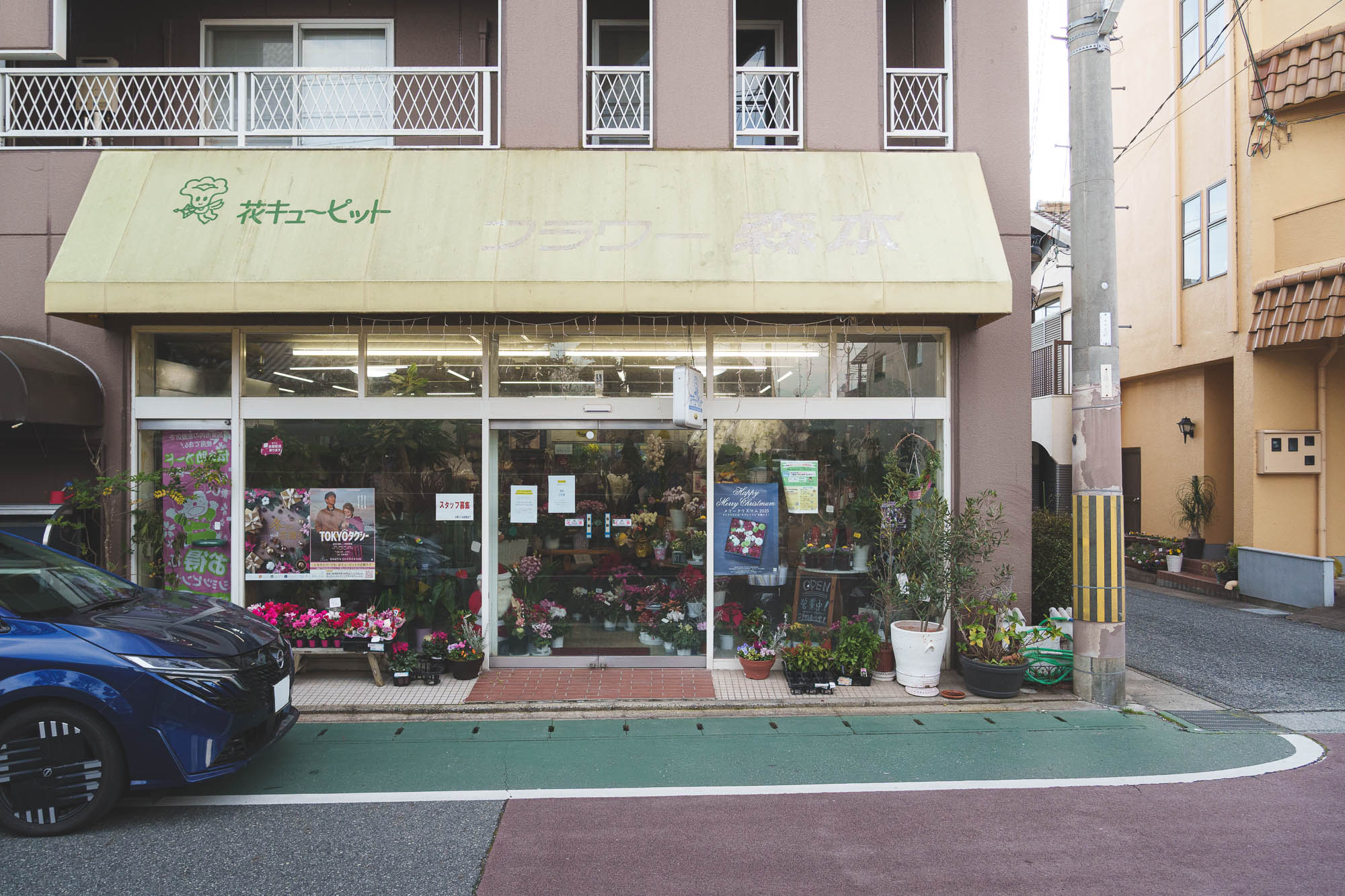 1951年に創業し、祖父・父・3姉妹(事業承継予定)・息子と、4世代が創業地で営む生花店、フラワー森本。