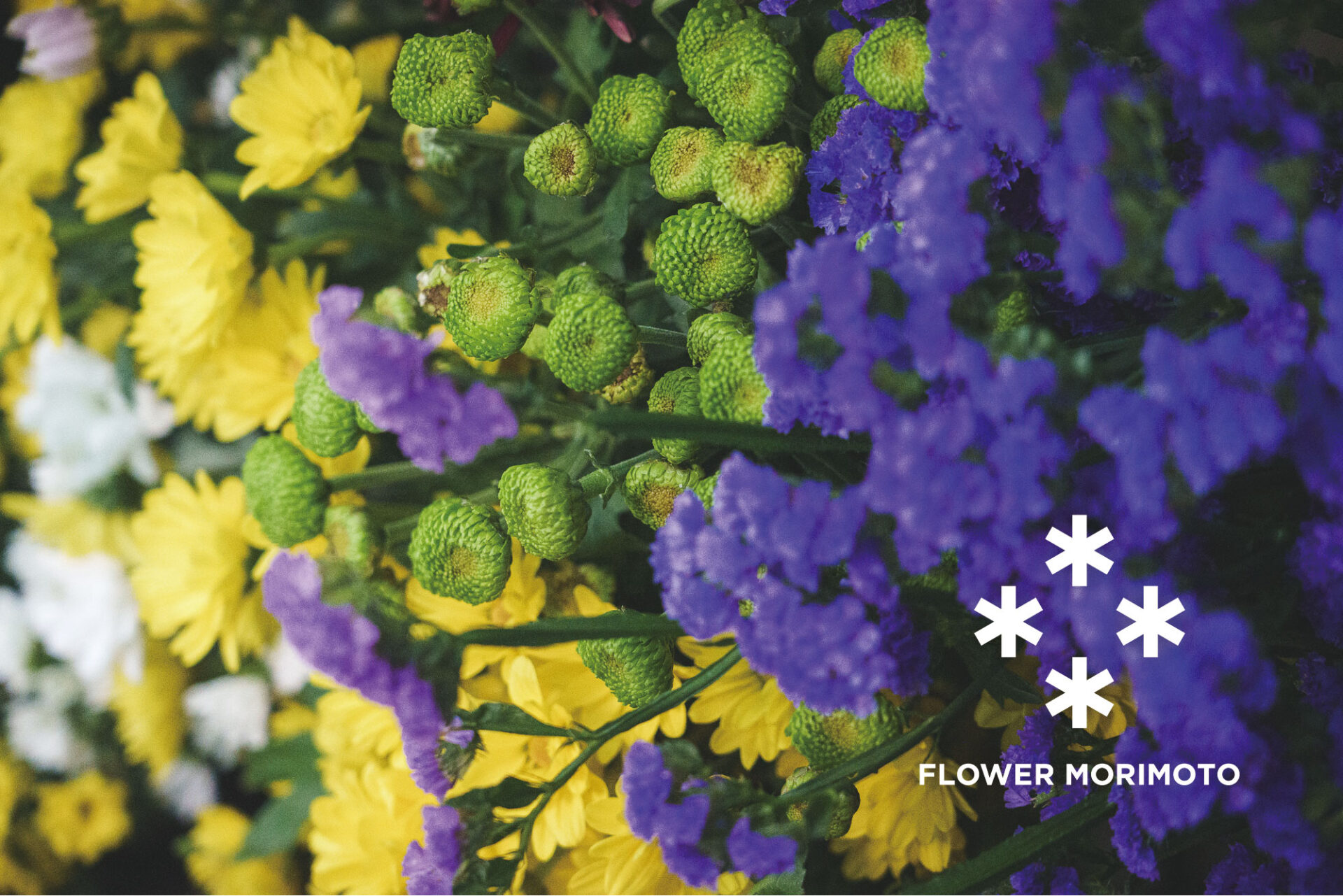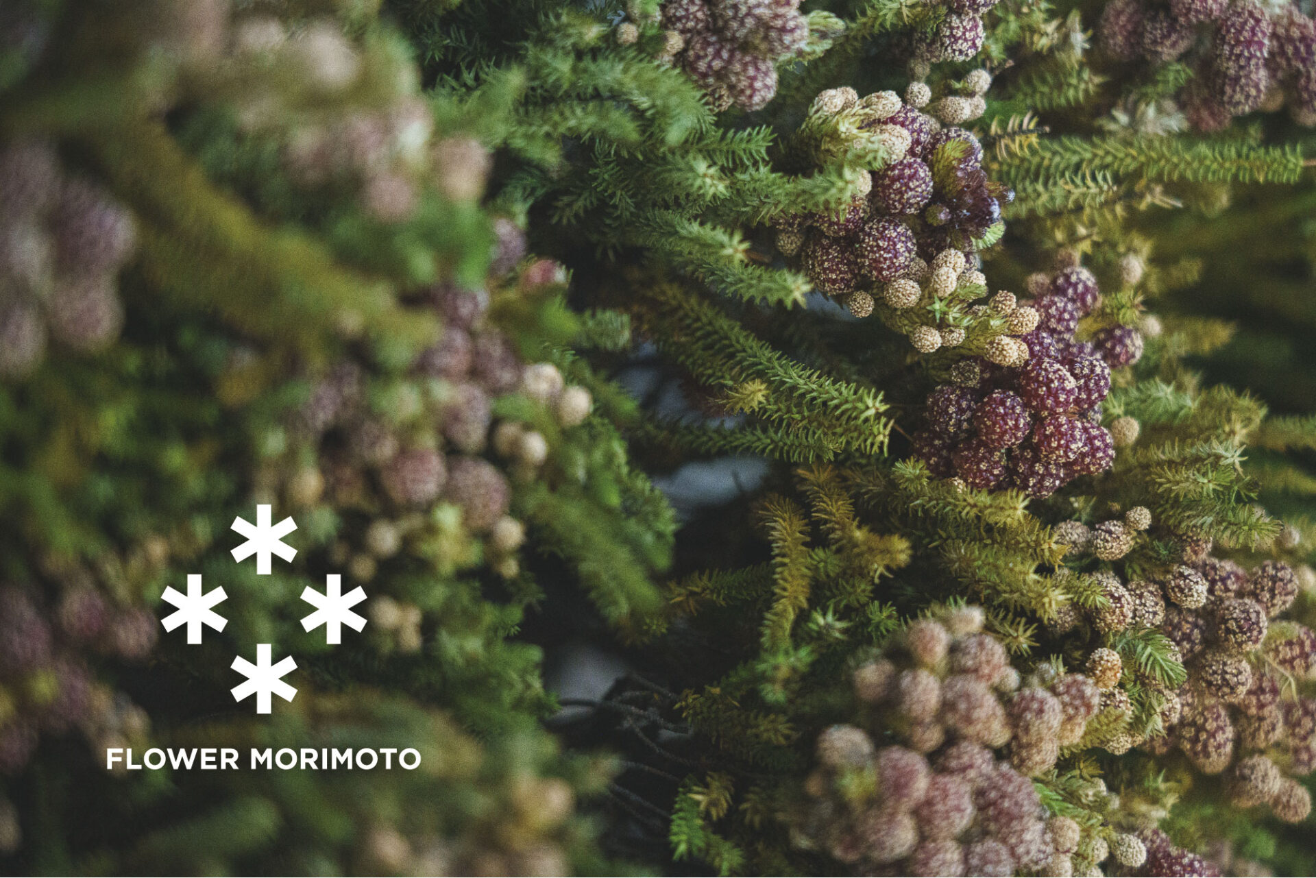 「森本」の字を縦書きしたときに並ぶ「4本の木」を抽象化した、花が集まるシンボルマーク。集まる花が、祖父から続く4世代の家族経営、地域に根ざし信頼を重ねたお客さんとの関係、 花を通じて人が繋がる場となる、これからのビジョンを表現しています。