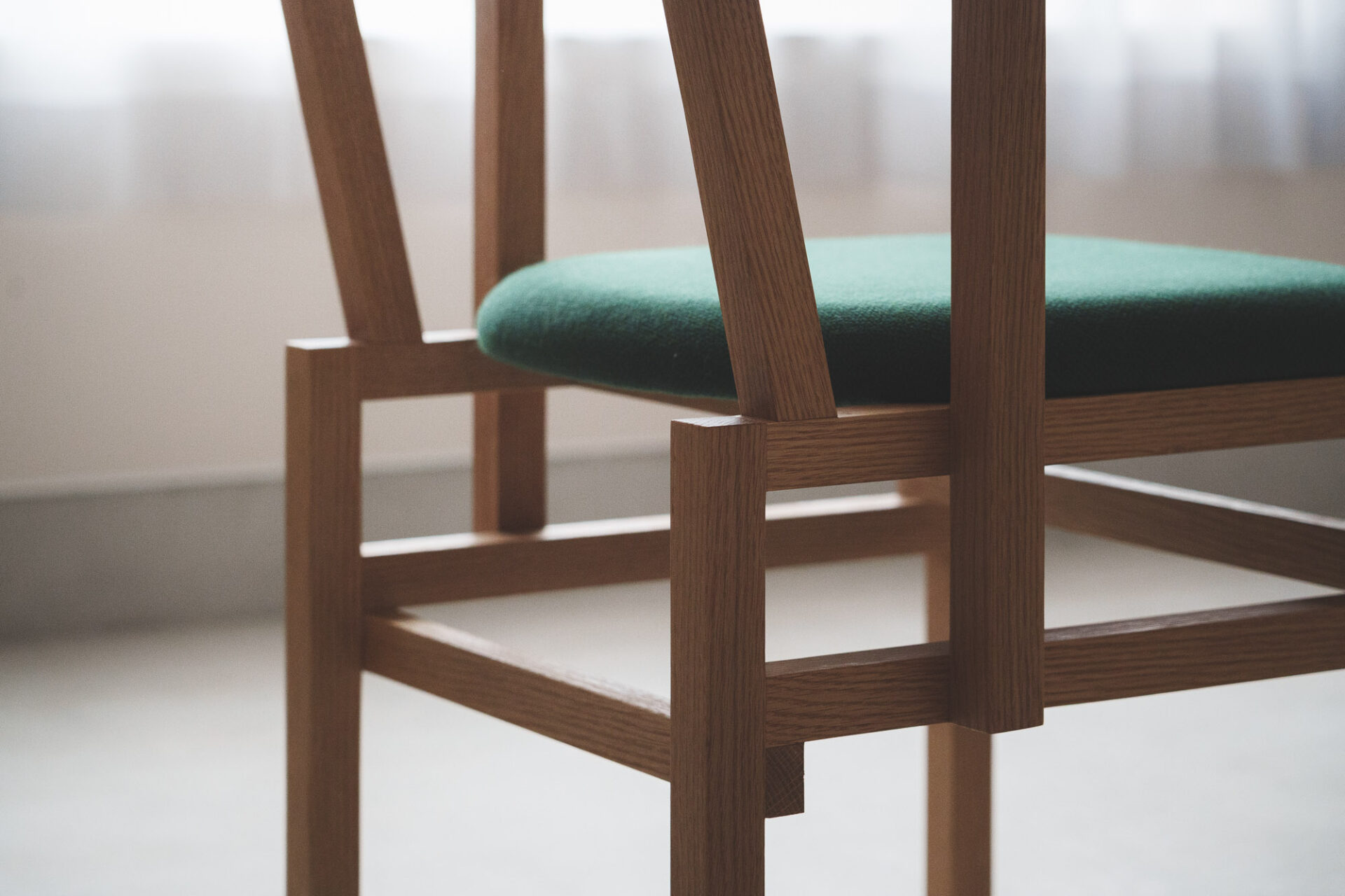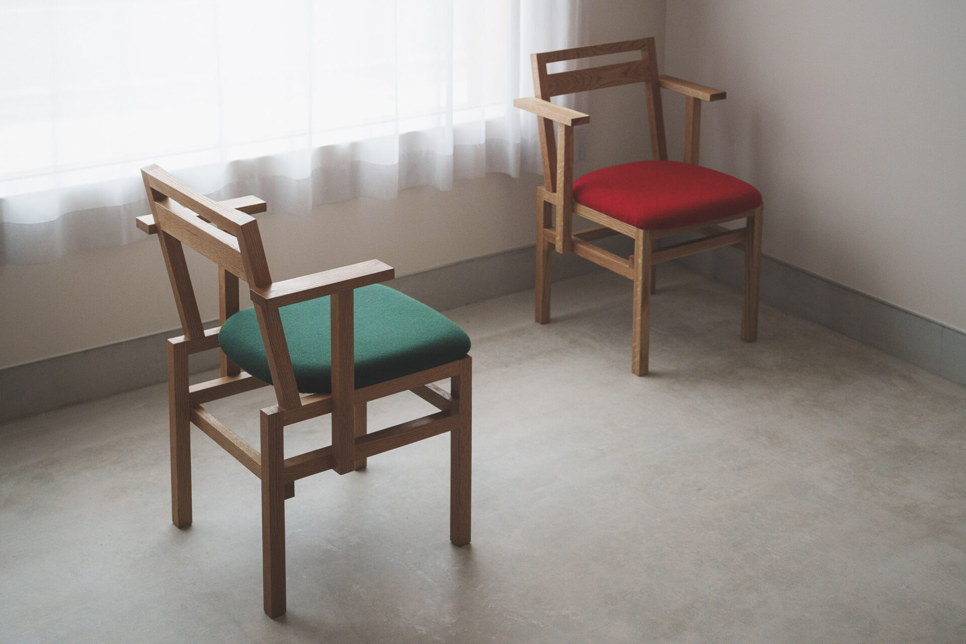 張地のカラーをじっくりと選び、「わたしの椅子」の愛着が芽生える、家具づくりに参加する機会も大切にしたいと考えました。摩耗やライフステージの変化に合わせて、張地を容易に交換できる構造です。