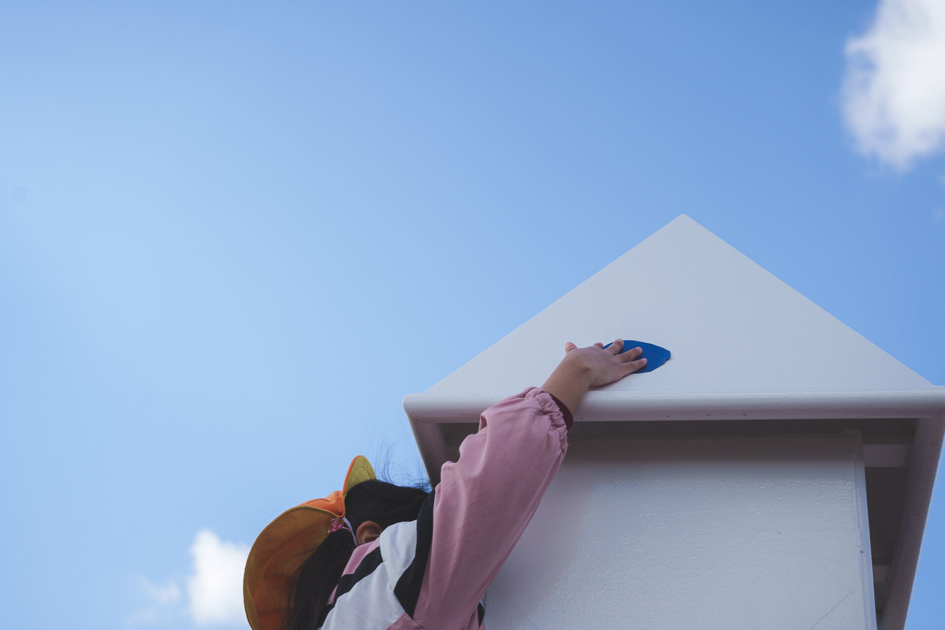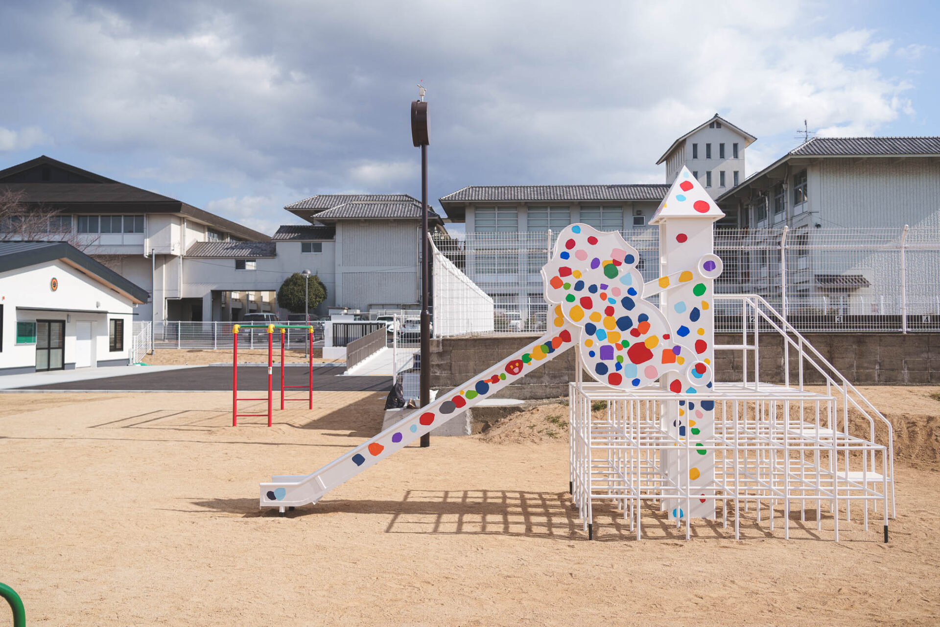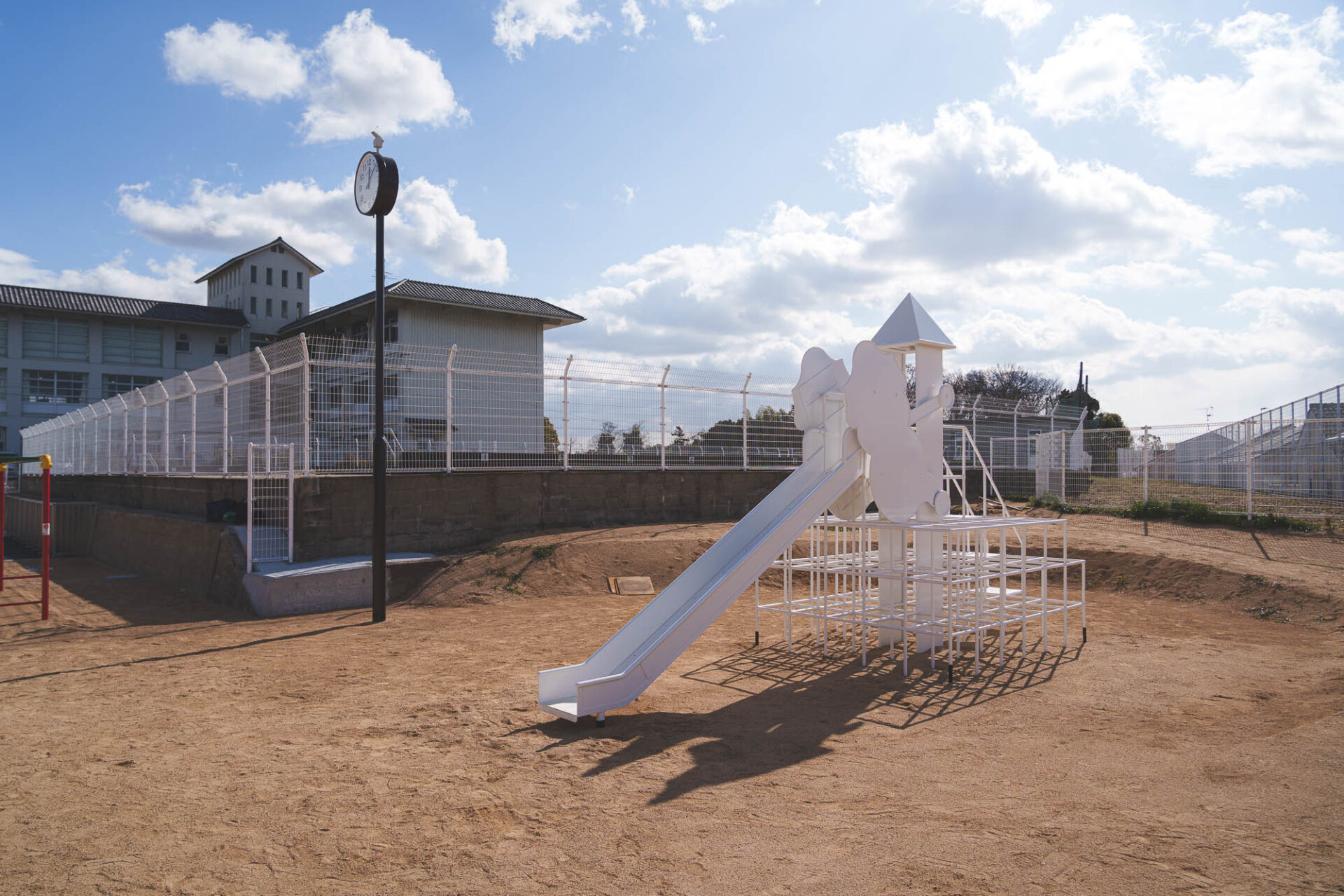 01 | わか松幼稚園から引き継ぎ、再利用するすべり台を、移設工事時に白く塗装する。