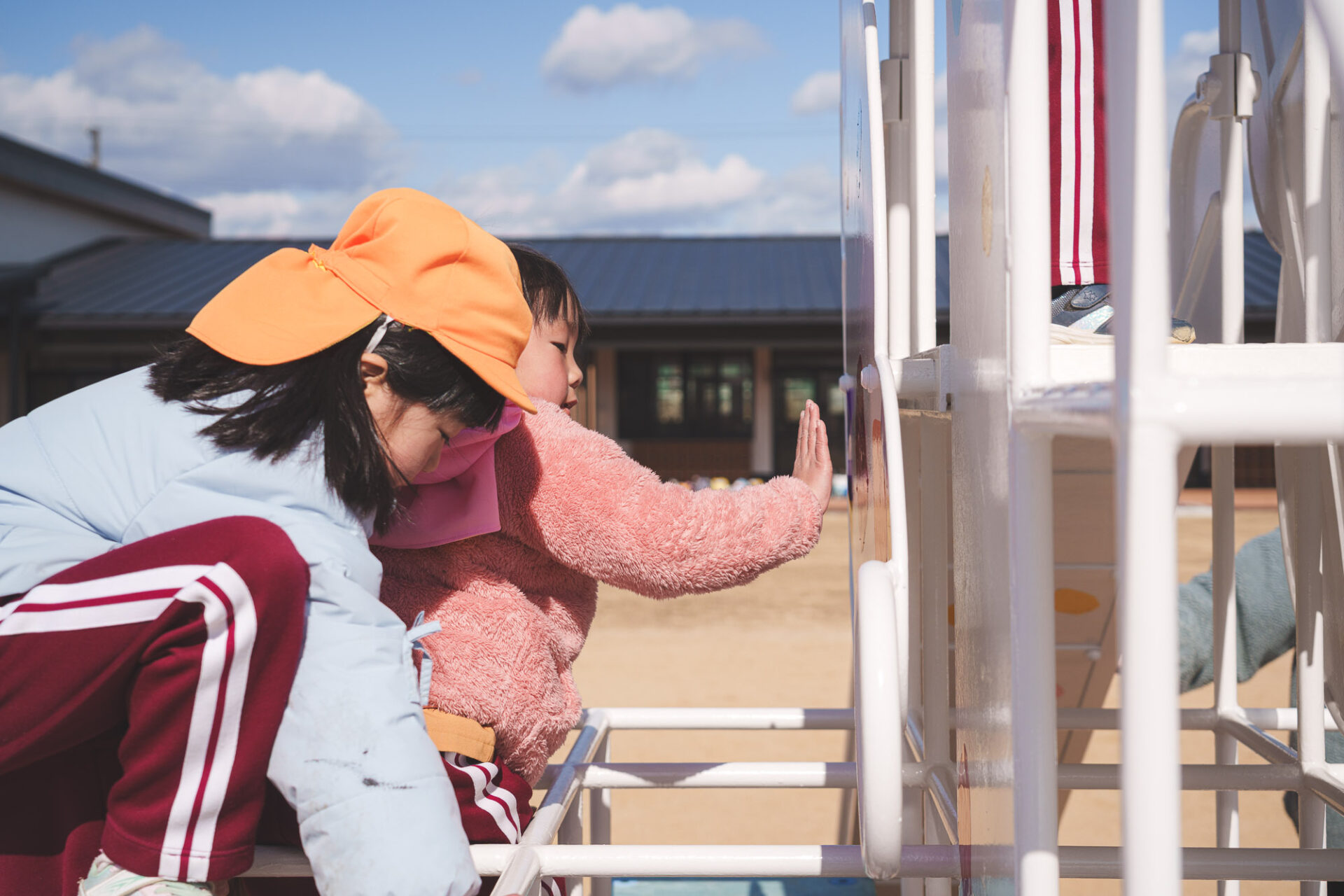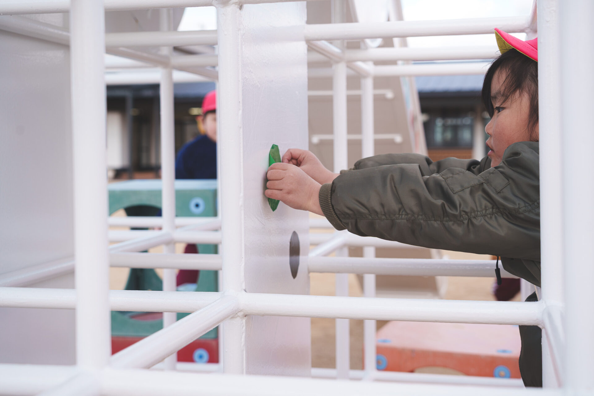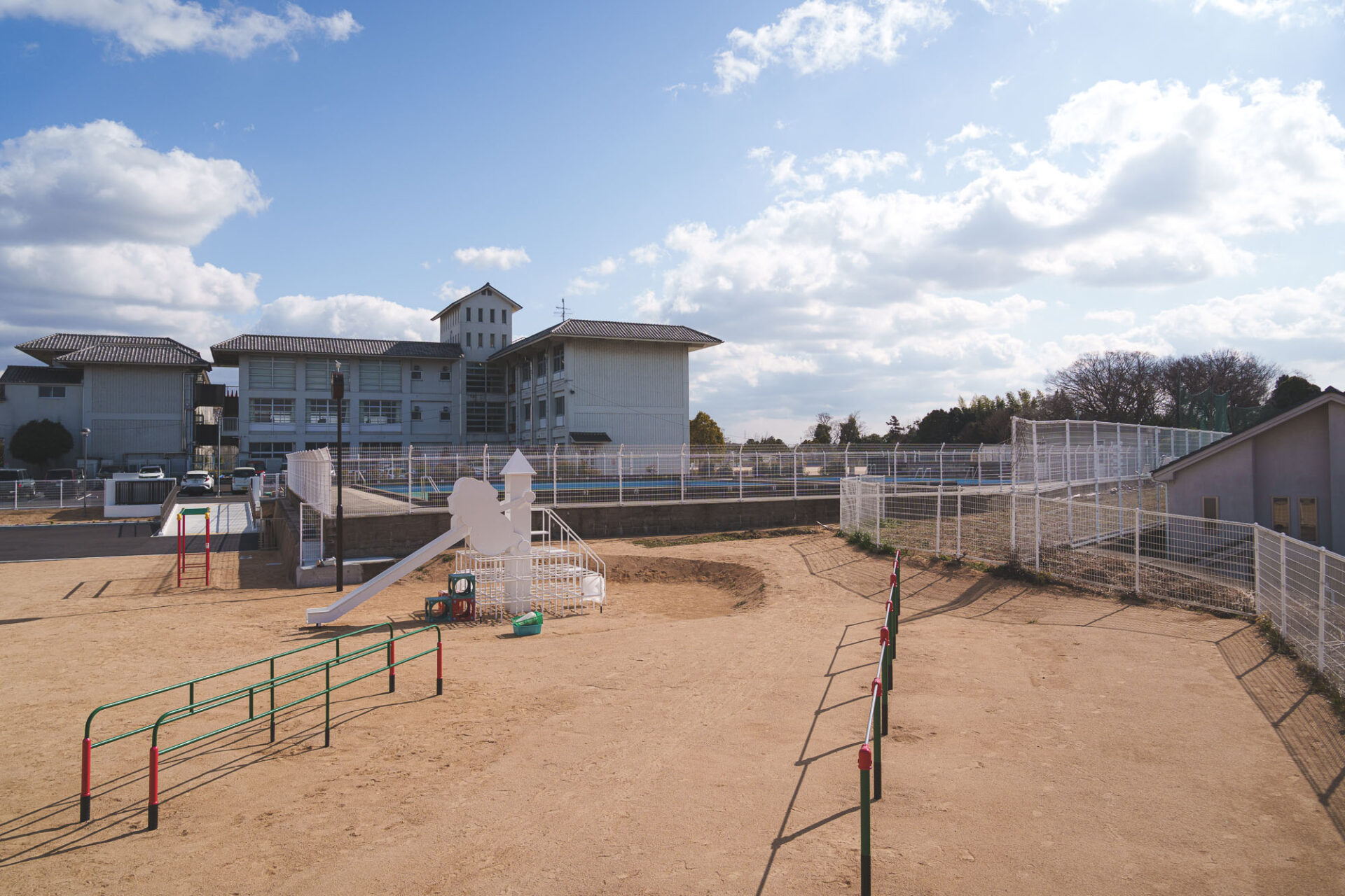 01 | わか松幼稚園から引き継ぎ、再利用するすべり台を、移設工事時に白く塗装する。